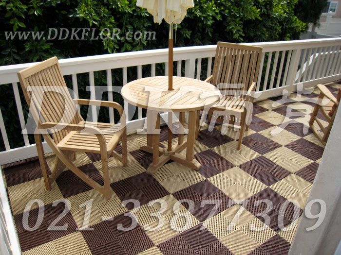 | 開放露臺地面處理,大家一定會問“樓頂露臺地面鋪什么地磚好?”。露臺地磚其實也就是要防滑和美觀2個效果,而美觀是個性化要求,防滑是露臺地面廣譜性要求,而防滑一般是要地磚防滑的。露臺地面鋪什么好?但新的防滑效果是通過新型自排水的塑化露臺防滑地磚達到的,如產品型號為:帝肯(DDK)_8100_T500的露臺地板就是這么一種適合30平米露臺的防滑地磚。此一產品同樣適合于別墅花園地 |